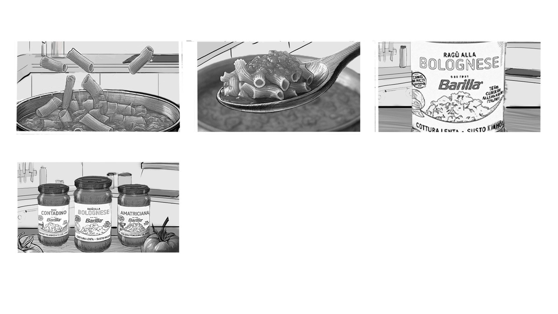 Short commercials for Barilla’s Bolognese, Contadina, and Amatriciana sauces for Connexia Agency